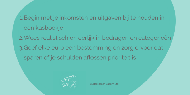 Heb je je uitgaven en inkomsten nog niet nauwkeurig genoteerd, begin daar dan mee. Dit is echt cruciaal!